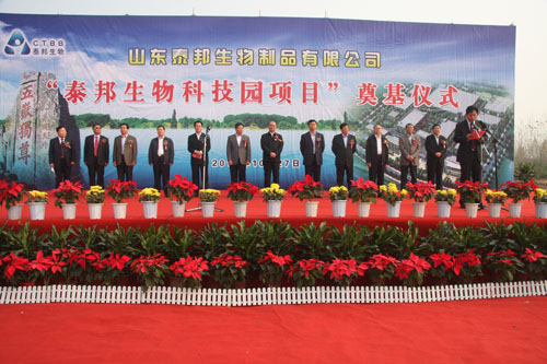 2012年10月27日上午,泰邦生物科技園在泰安高新區(qū)天頤湖北臨開工奠基,市委書記、市人大常委會主任李洪峰,市委副書記、市長王云鵬,市委副書記李琥,市人大常委會黨組書記、第一副主任林華勇,市委常委、副市長辛顯明,市委常委、秘書長陳剛,市委常委、組織部長陳平,市政協(xié)副主席宋魯,泰邦生物集團董事局主席高小英表示祝賀。